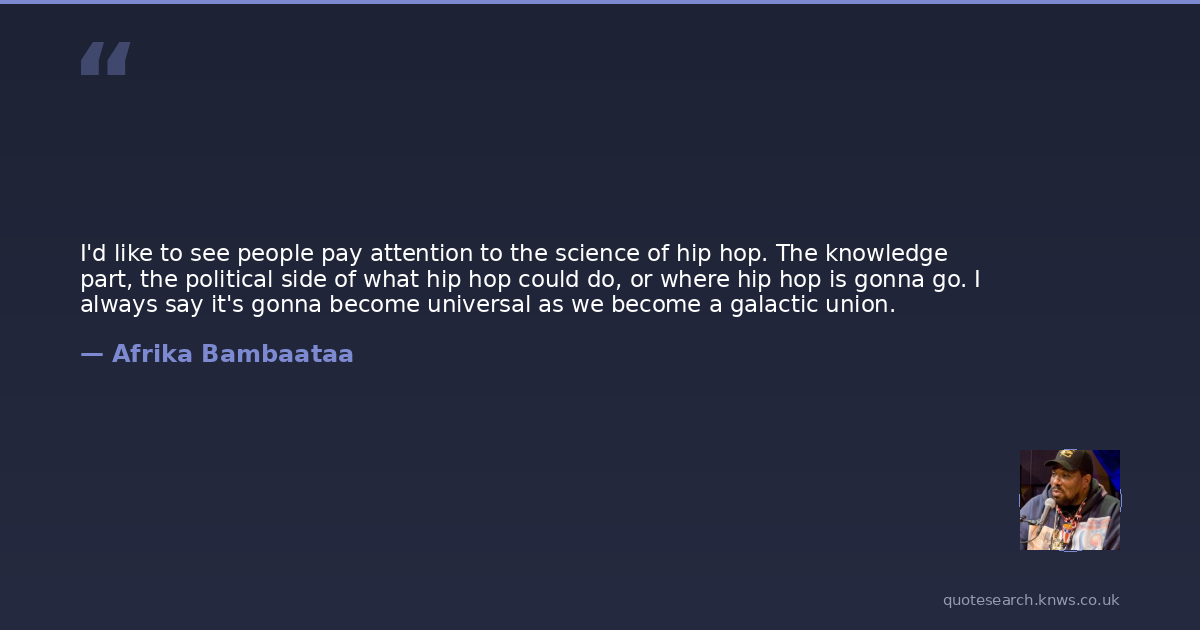 I'd like to see people pay attention to the science of hip hop. The knowledge part, the political side of what hip hop could do, or where hip hop is gonna go. I always say it's gonna become universal as we become a galactic union.