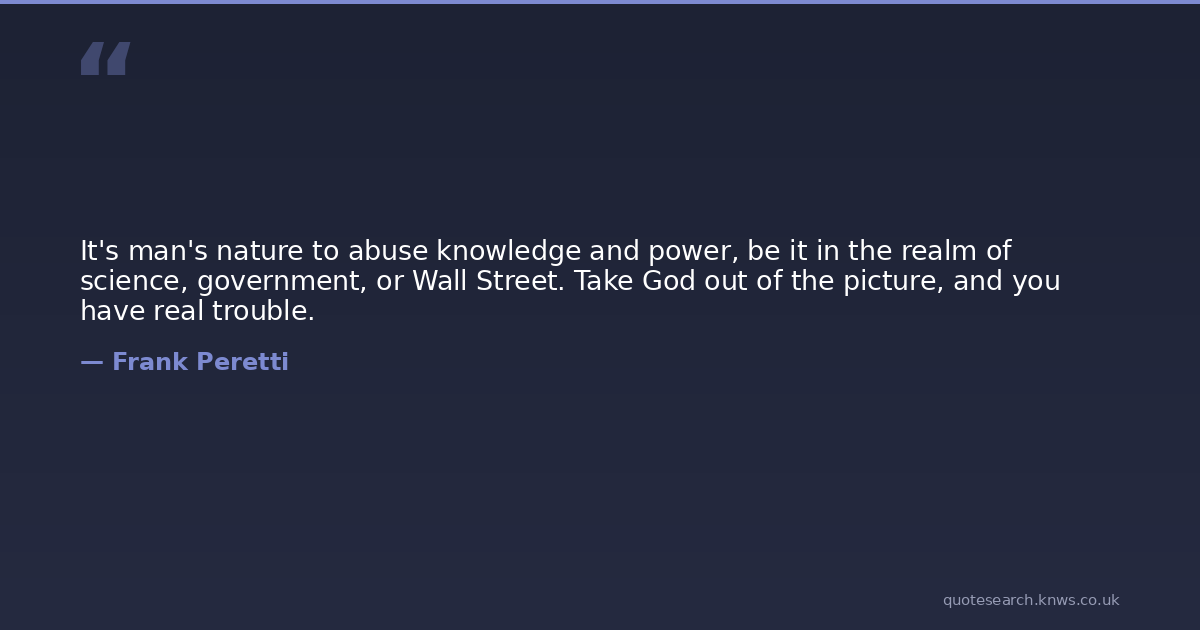 It's man's nature to abuse knowledge and power, be it in the realm of science, government, or Wall Street. Take God out of the picture, and you have real trouble.