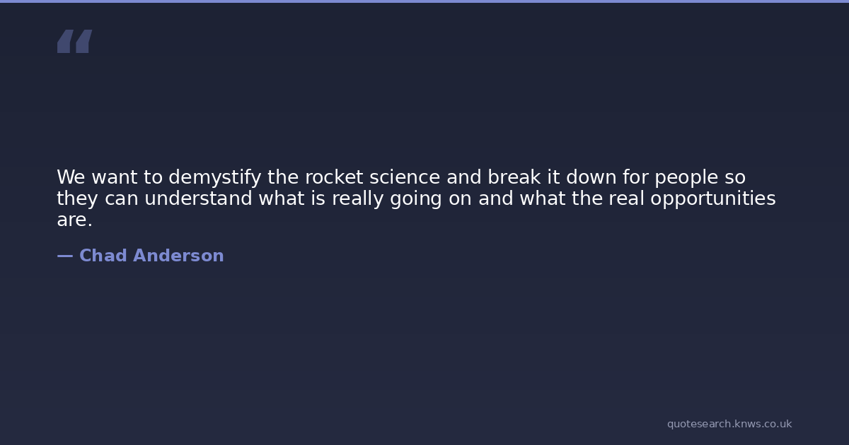 We want to demystify the rocket science and break it down for people so they can understand what is really going on and what the real opportunities are.