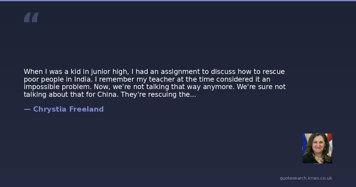When I was a kid in junior high, I had an assignment to discuss how to rescue poor people in India. I remember my teacher at the time considered it an impossible problem. Now, we're not talking that way anymore. We're sure not talking about that for China. They're rescuing themselves thanks to globalization.