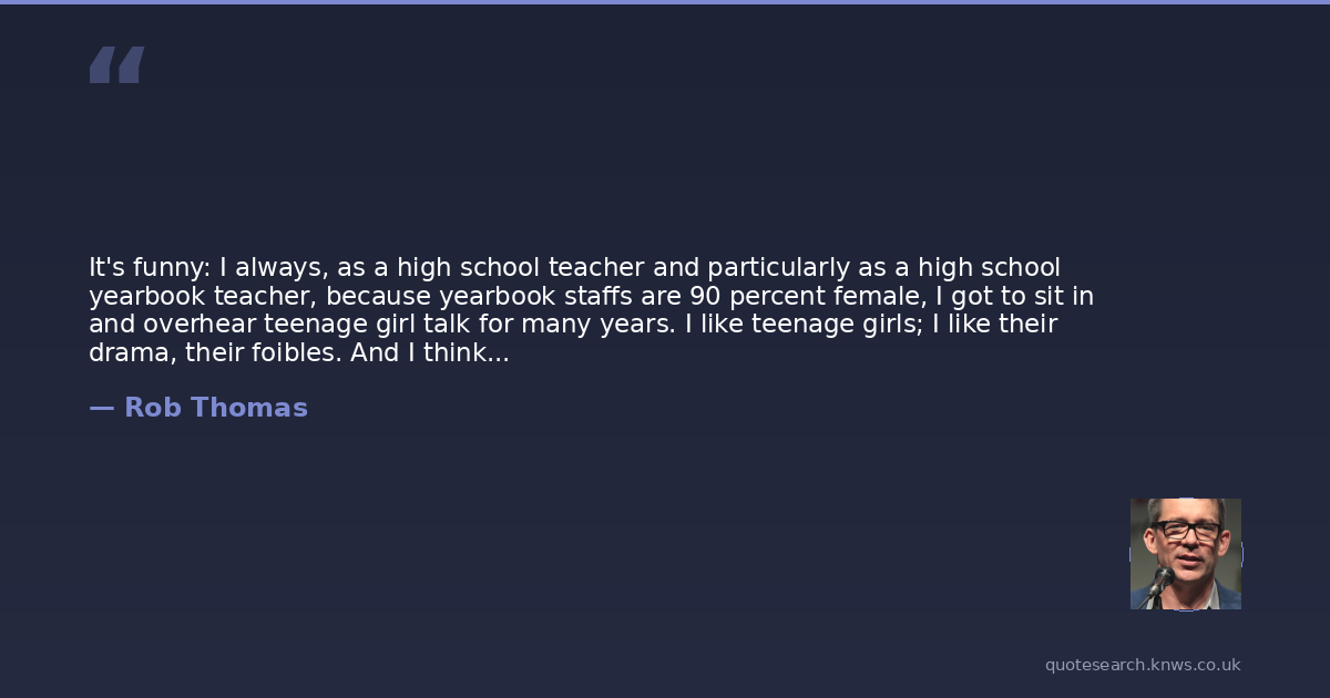 It's funny: I always, as a high school teacher and particularly as a high school yearbook teacher, because yearbook staffs are 90 percent female, I got to sit in and overhear teenage girl talk for many years. I like teenage girls; I like their drama, their foibles. And I think, 'I'll be good with a teenage daughter!'