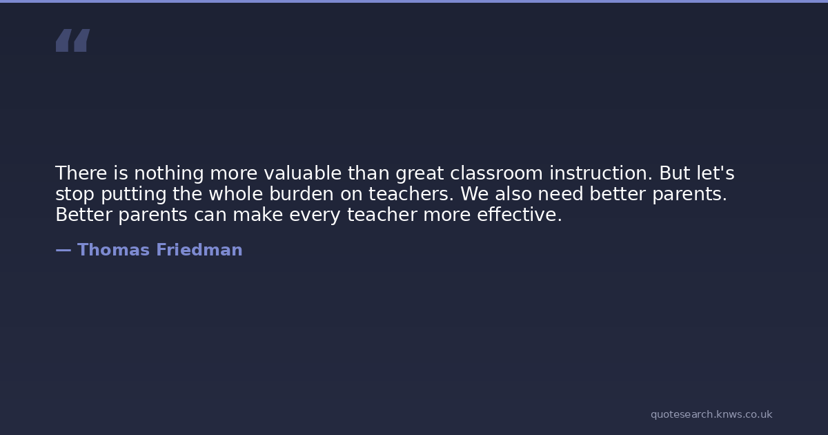 There is nothing more valuable than great classroom instruction. But let's stop putting the whole burden on teachers. We also need better parents. Better parents can make every teacher more effective.