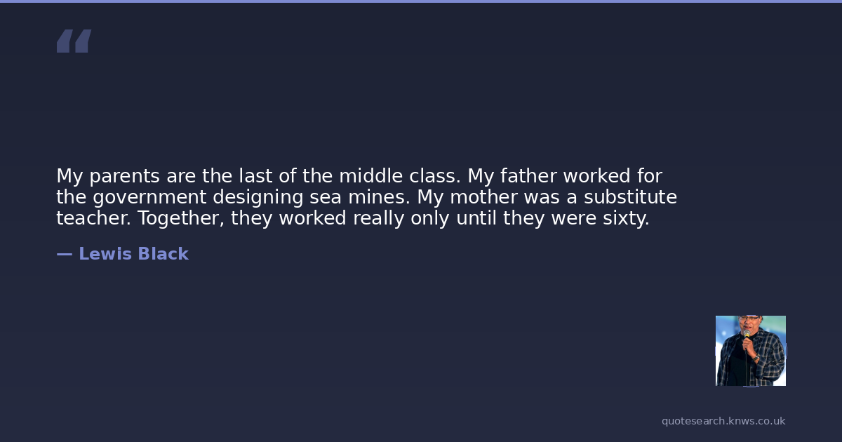 My parents are the last of the middle class. My father worked for the government designing sea mines. My mother was a substitute teacher. Together, they worked really only until they were sixty.