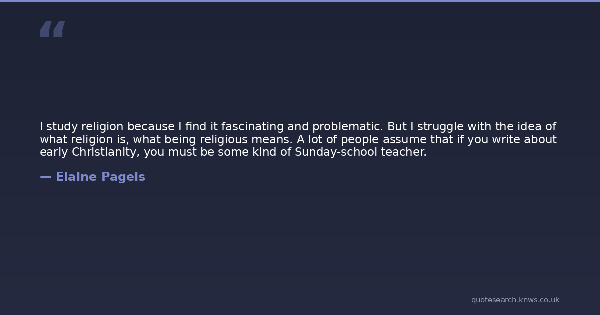 I study religion because I find it fascinating and problematic. But I struggle with the idea of what religion is, what being religious means. A lot of people assume that if you write about early Christianity, you must be some kind of Sunday-school teacher.