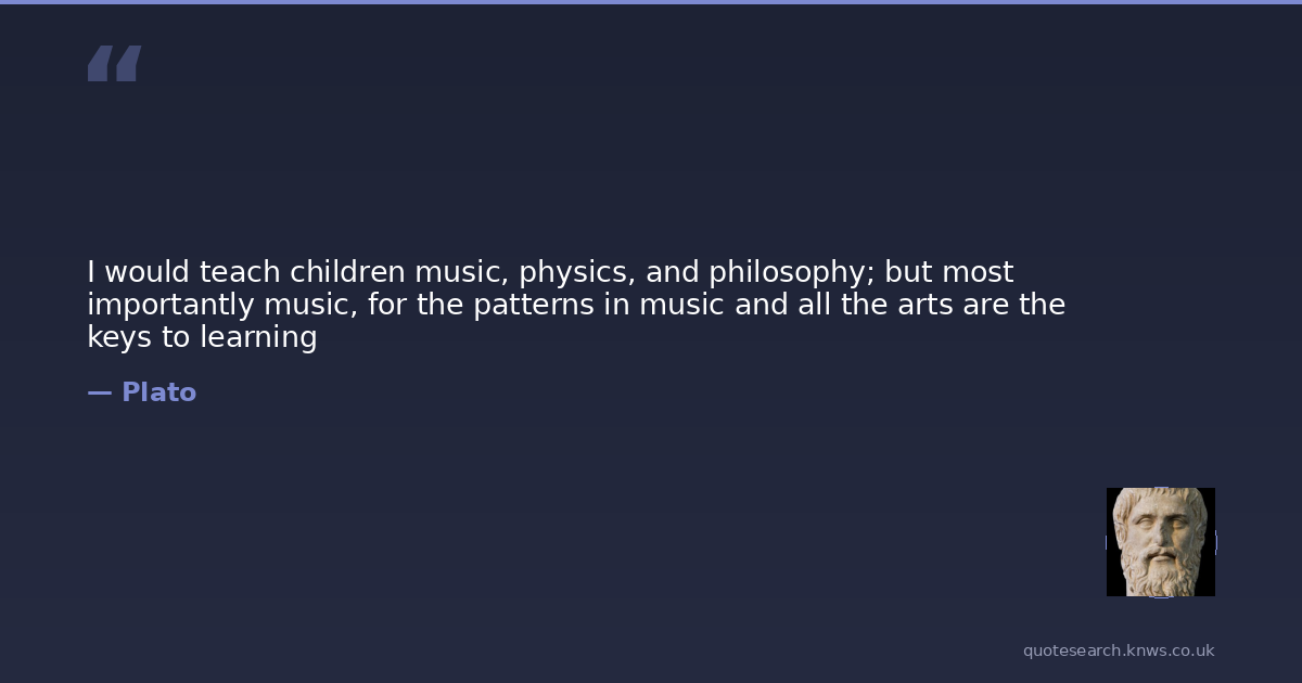 I would teach children music, physics, and philosophy; but most importantly music, for the patterns in music and all the arts are the keys to learning