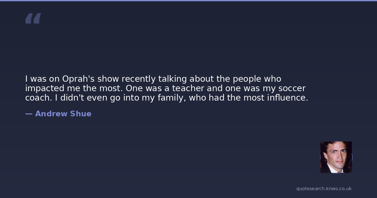 I was on Oprah's show recently talking about the people who impacted me the most. One was a teacher and one was my soccer coach. I didn't even go into my family, who had the most influence.