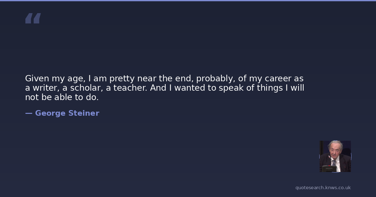 George Steiner was a 20th-century American and american writer, literary critic and philosopher. Francis George Steiner, FBA was a French and American literary critic, essayist, philosopher, novelist and educator. He wrote extensively about the relationship between language, literature and society, as well as the impact of the Holocaust. Read more on Wikipedia →