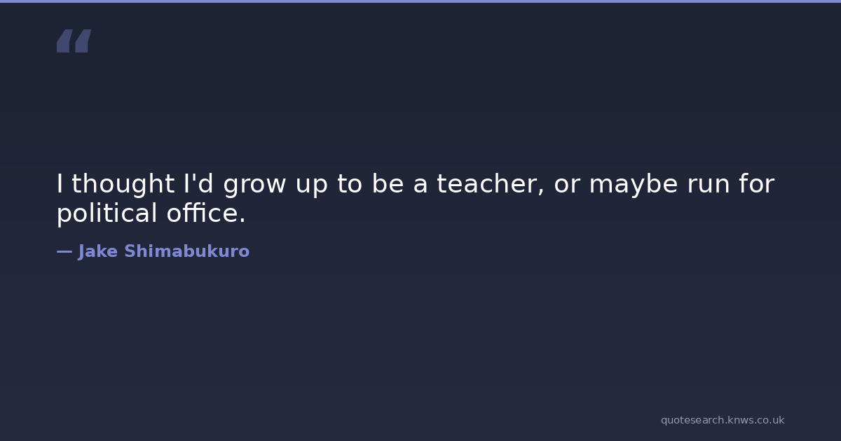 I thought I'd grow up to be a teacher, or maybe run for political office. Thought Political Grow Download Image Share on X Share on Facebook Copy Link