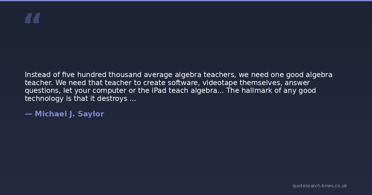 Instead of five hundred thousand average algebra teachers, we need one good algebra teacher. We need that teacher to create software, videotape themselves, answer questions, let your computer or the iPad teach algebra... The hallmark of any good technology is that it destroys jobs.