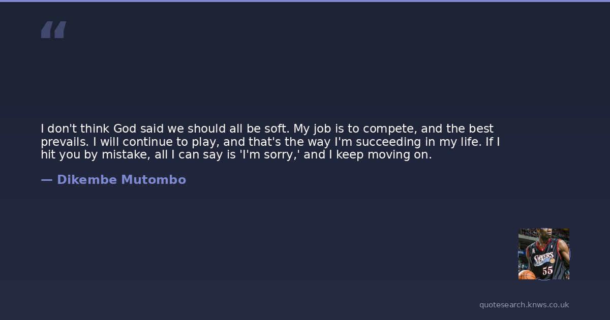 I don't think God said we should all be soft. My job is to compete, and the best prevails. I will continue to play, and that's the way I'm succeeding in my life. If I hit you by mistake, all I can say is 'I'm sorry,' and I keep moving on.