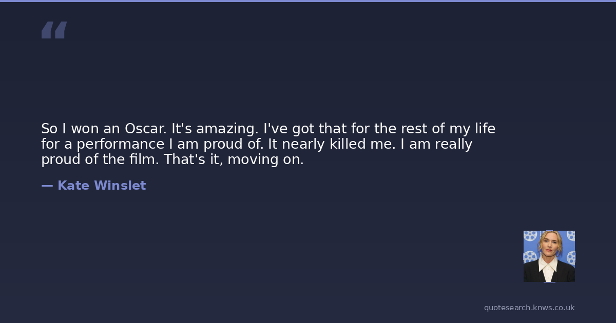 So I won an Oscar. It's amazing. I've got that for the rest of my life for a performance I am proud of. It nearly killed me. I am really proud of the film. That's it, moving on.