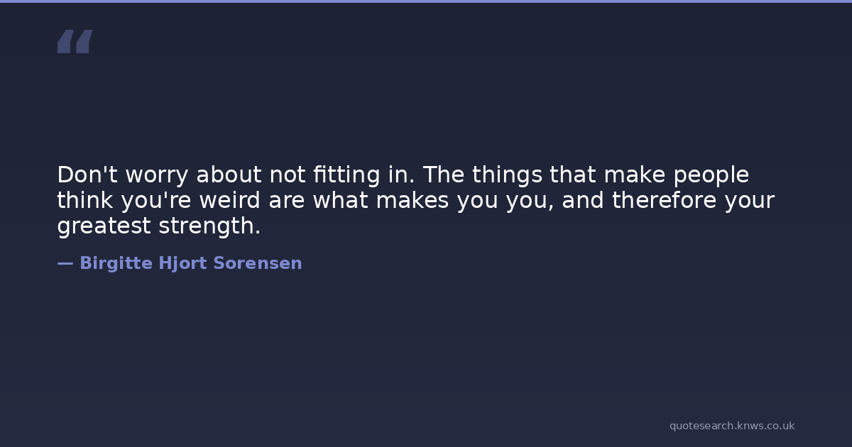 Don't worry about not fitting in. The things that make people think you're weird are what makes you you, and therefore your greatest strength.