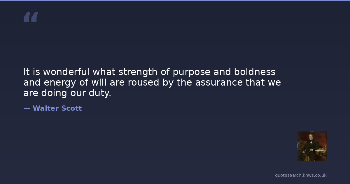 It is wonderful what strength of purpose and boldness and energy of will are roused by the assurance that we are doing our duty.