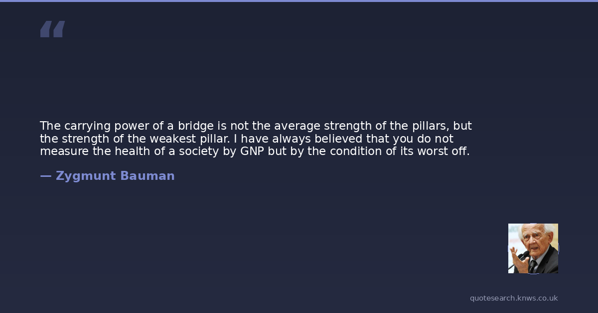 The carrying power of a bridge is not the average strength of the pillars, but the strength of the weakest pillar. I have always believed that you do not measure the health of a society by GNP but by the condition of its worst off.