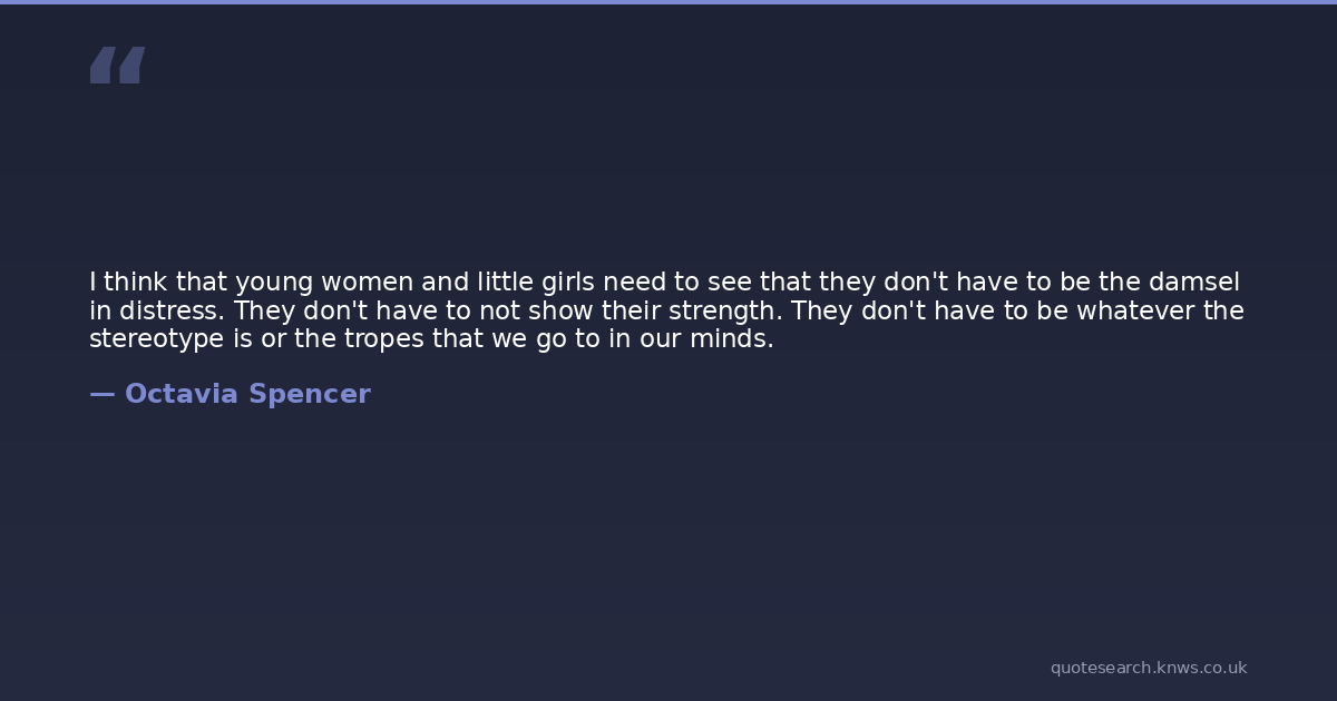 I think that young women and little girls need to see that they don't have to be the damsel in distress. They don't have to not show their strength. They don't have to be whatever the stereotype is or the tropes that we go to in our minds.