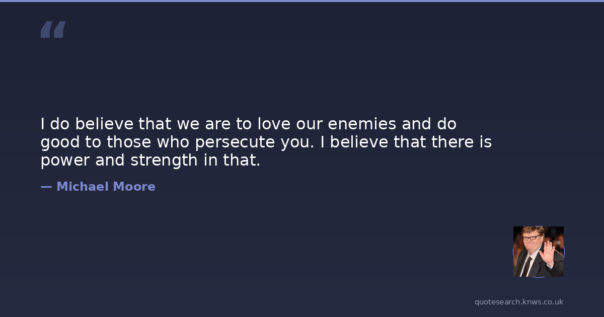 I do believe that we are to love our enemies and do good to those who persecute you. I believe that there is power and strength in that.
