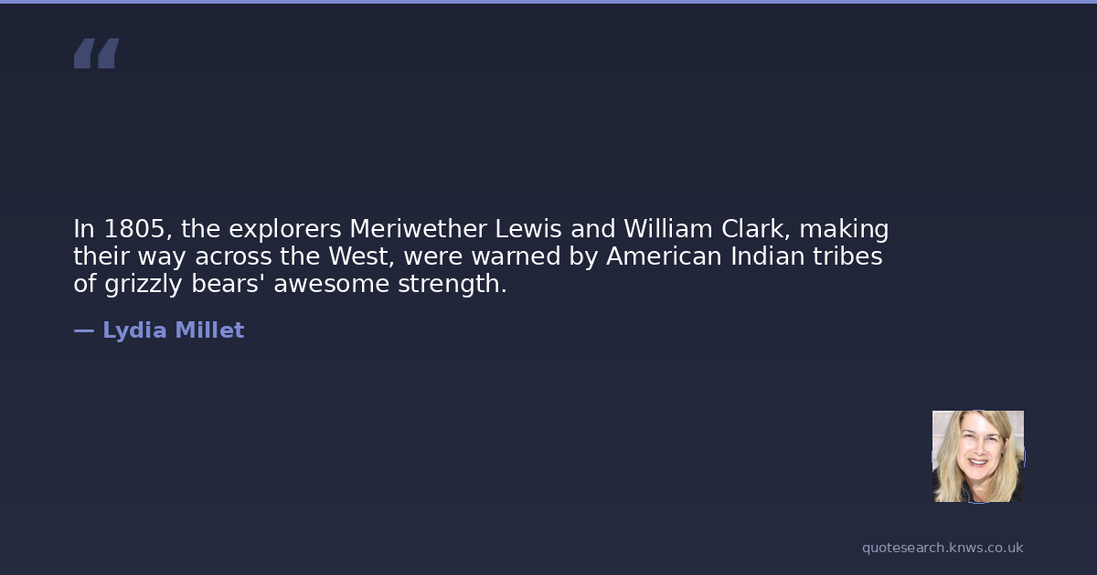 In 1805, the explorers Meriwether Lewis and William Clark, making their way across the West, were warned by American Indian tribes of grizzly bears' awesome strength.