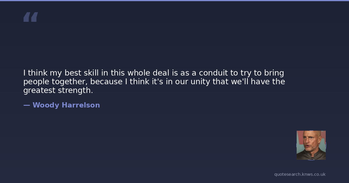 I think my best skill in this whole deal is as a conduit to try to bring people together, because I think it's in our unity that we'll have the greatest strength.