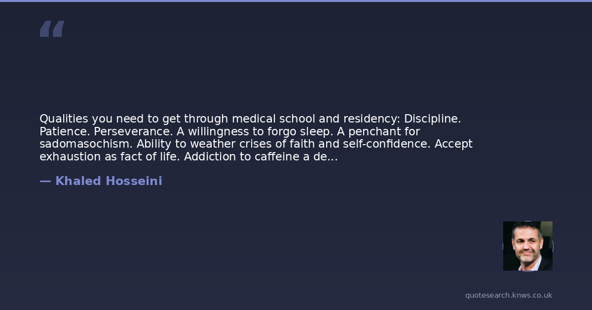 Qualities you need to get through medical school and residency: Discipline. Patience. Perseverance. A willingness to forgo sleep. A penchant for sadomasochism. Ability to weather crises of faith and self-confidence. Accept exhaustion as fact of life. Addiction to caffeine a definite plus. Unfailing optimism that the end is in sight.