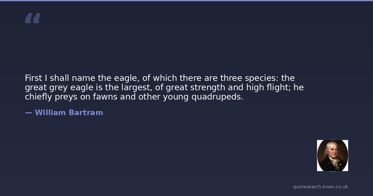 First I shall name the eagle, of which there are three species: the great grey eagle is the largest, of great strength and high flight; he chiefly preys on fawns and other young quadrupeds.
