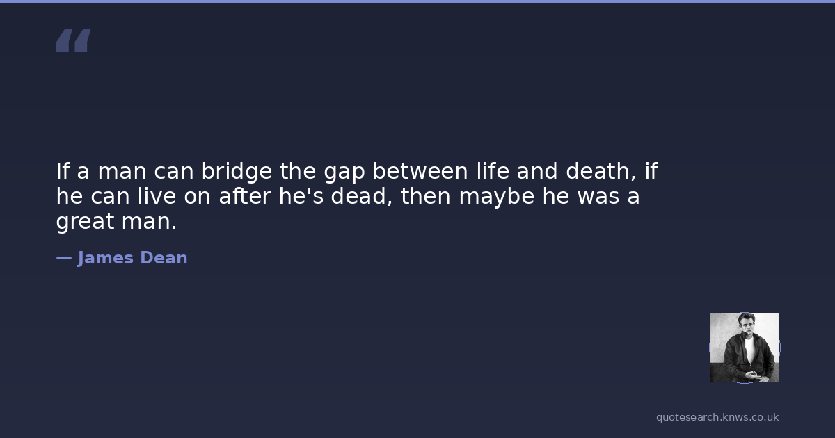 If a man can bridge the gap between life and death, if he can live on after he's dead, then maybe he was a great man.