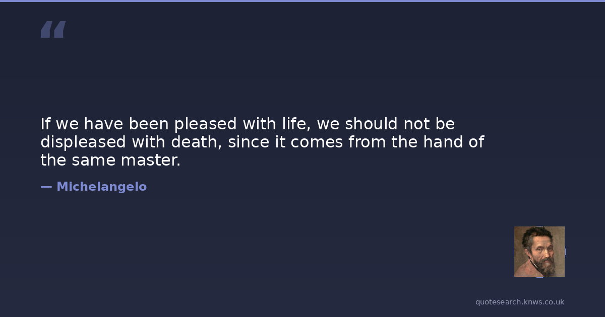 If we have been pleased with life, we should not be displeased with death, since it comes from the hand of the same master.