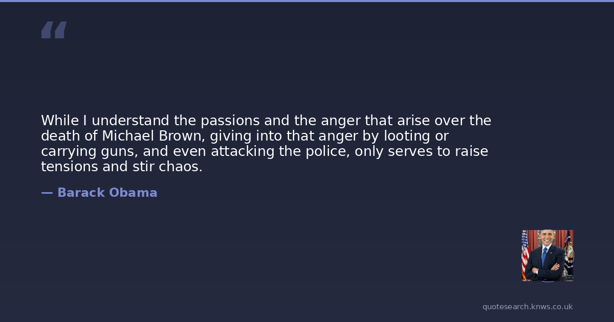 While I understand the passions and the anger that arise over the death of Michael Brown, giving into that anger by looting or carrying guns, and even attacking the police, only serves to raise tensions and stir chaos.