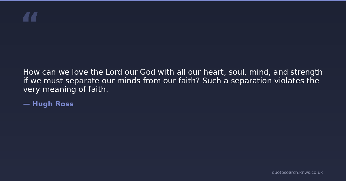 How can we love the Lord our God with all our heart, soul, mind, and strength if we must separate our minds from our faith? Such a separation violates the very meaning of faith.
