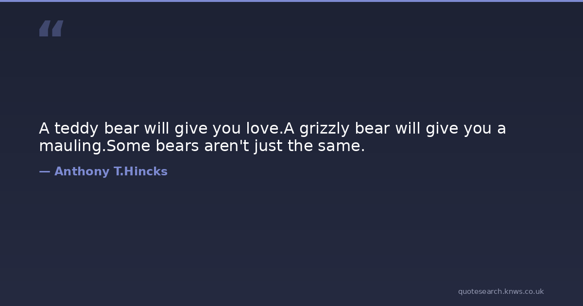 A teddy bear will give you love.A grizzly bear will give you a mauling.Some bears aren't just the same.