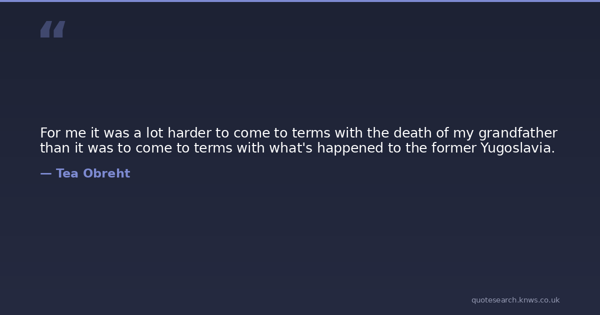 For me it was a lot harder to come to terms with the death of my grandfather than it was to come to terms with what's happened to the former Yugoslavia.