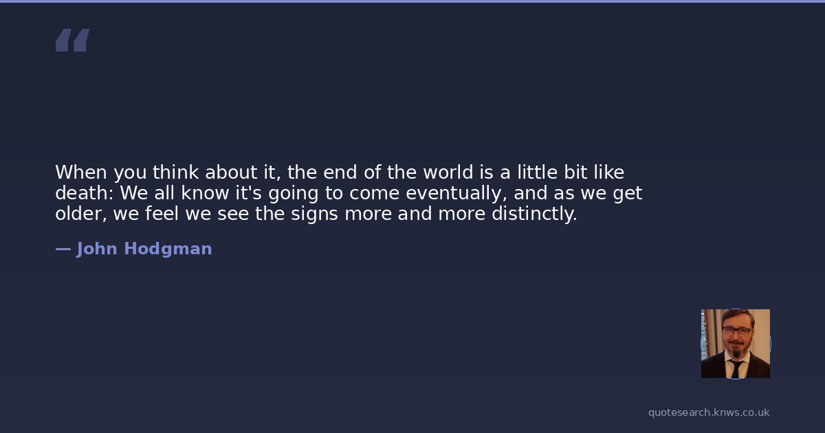 When you think about it, the end of the world is a little bit like death: We all know it's going to come eventually, and as we get older, we feel we see the signs more and more distinctly.