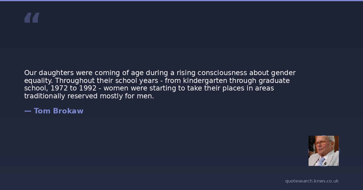 Our daughters were coming of age during a rising consciousness about gender equality. Throughout their school years - from kindergarten through graduate school, 1972 to 1992 - women were starting to take their places in areas traditionally reserved mostly for men.