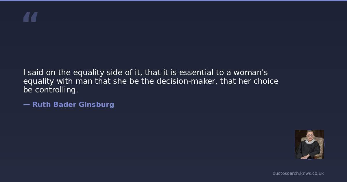 I said on the equality side of it, that it is essential to a woman's equality with man that she be the decision-maker, that her choice be controlling.