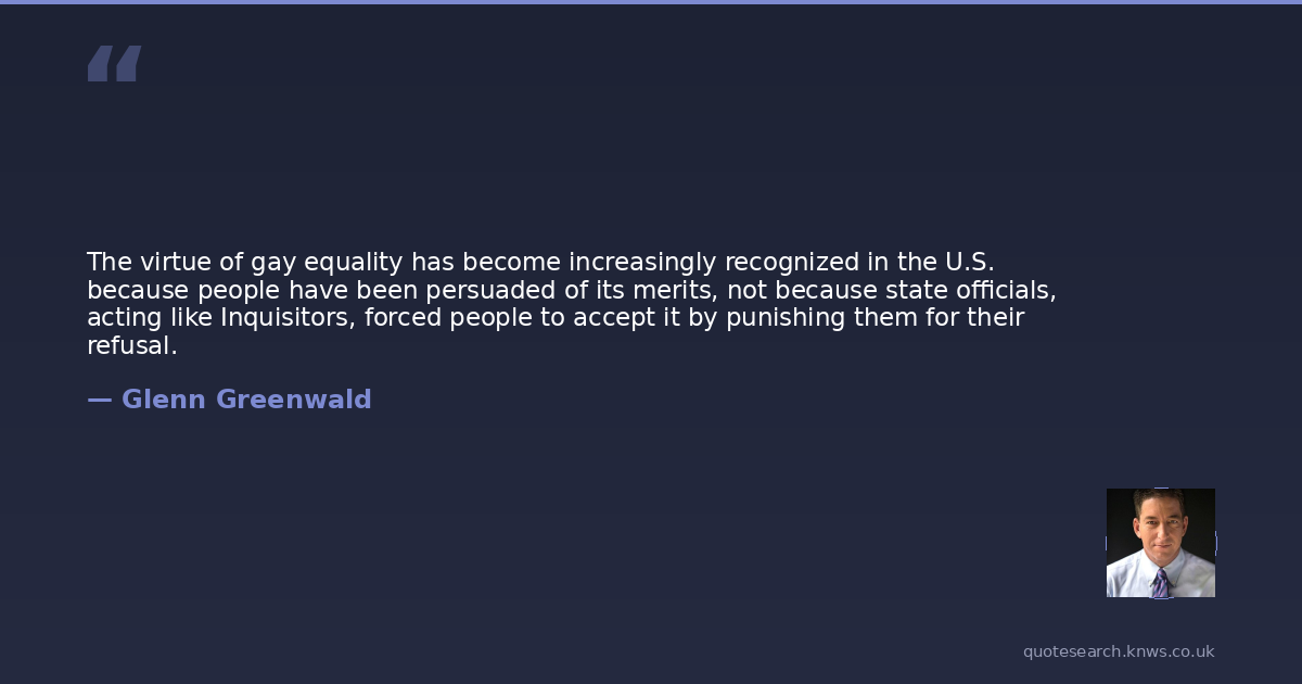 The virtue of gay equality has become increasingly recognized in the U.S. because people have been persuaded of its merits, not because state officials, acting like Inquisitors, forced people to accept it by punishing them for their refusal.