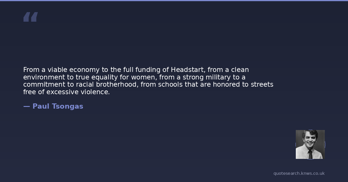 From a viable economy to the full funding of Headstart, from a clean environment to true equality for women, from a strong military to a commitment to racial brotherhood, from schools that are honored to streets free of excessive violence.