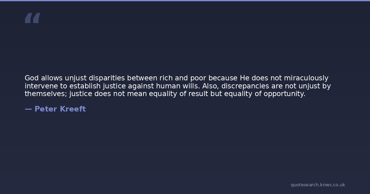 God allows unjust disparities between rich and poor because He does not miraculously intervene to establish justice against human wills. Also, discrepancies are not unjust by themselves; justice does not mean equality of result but equality of opportunity.