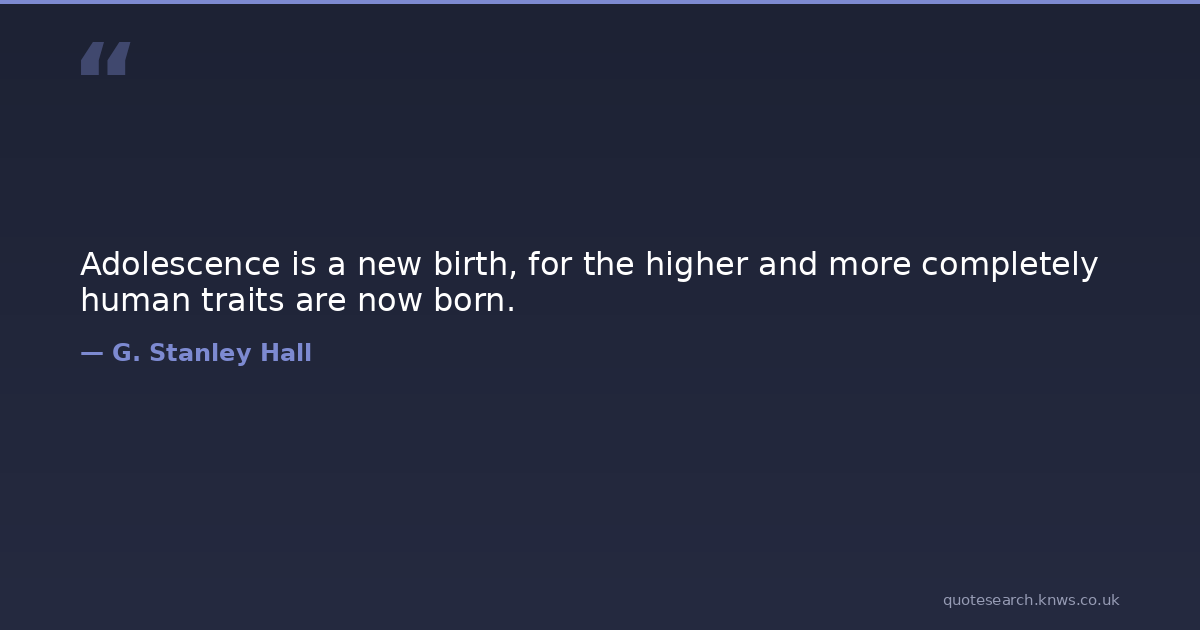 Adolescence is a new birth, for the higher and more completely human traits are now born.
