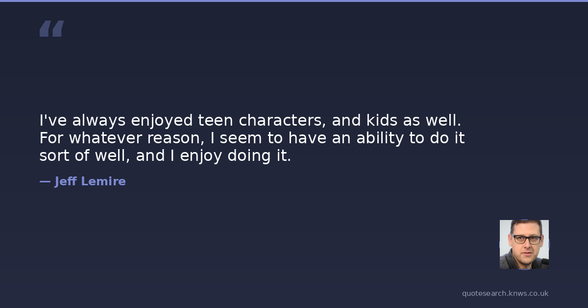 I've always enjoyed teen characters, and kids as well. For whatever reason, I seem to have an ability to do it sort of well, and I enjoy doing it.