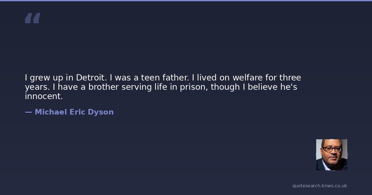 I grew up in Detroit. I was a teen father. I lived on welfare for three years. I have a brother serving life in prison, though I believe he's innocent.