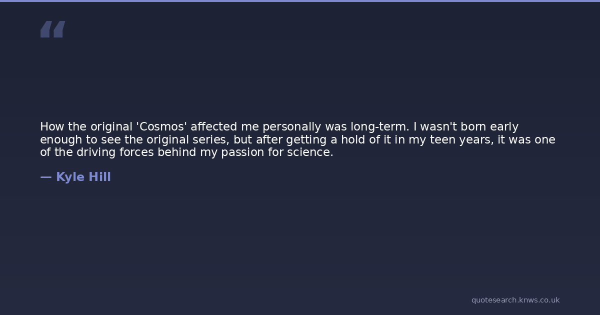 How the original 'Cosmos' affected me personally was long-term. I wasn't born early enough to see the original series, but after getting a hold of it in my teen years, it was one of the driving forces behind my passion for science.
