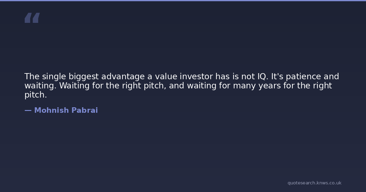 The single biggest advantage a value investor has is not IQ. It's patience and waiting. Waiting for the right pitch, and waiting for many years for the right pitch.
