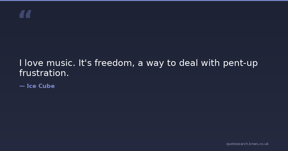 I love music. It's freedom, a way to deal with pent-up frustration. Love Freedom Frustration Download Image Share on X Share on Facebook Copy Link