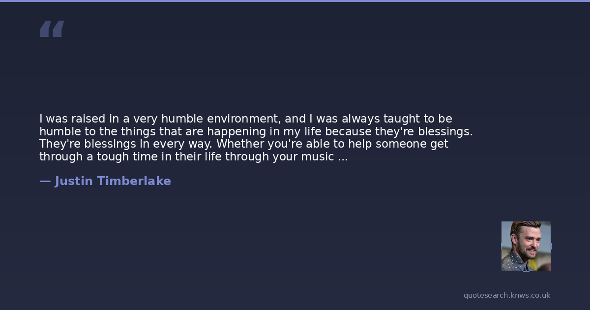 I was raised in a very humble environment, and I was always taught to be humble to the things that are happening in my life because they're blessings. They're blessings in every way. Whether you're able to help someone get through a tough time in their life through your music or through comedy, or whatever it is, you're just a channel.