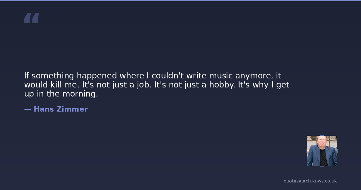 If something happened where I couldn't write music anymore, it would kill me. It's not just a job. It's not just a hobby. It's why I get up in the morning.