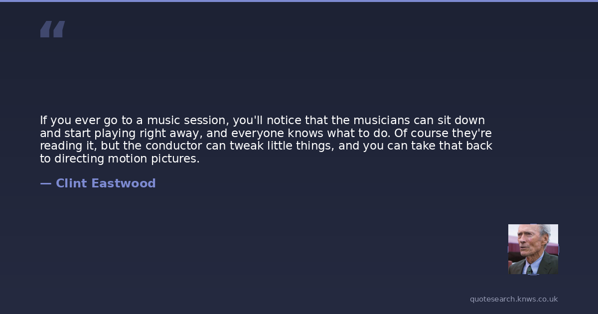If you ever go to a music session, you'll notice that the musicians can sit down and start playing right away, and everyone knows what to do. Of course they're reading it, but the conductor can tweak little things, and you can take that back to directing motion pictures.