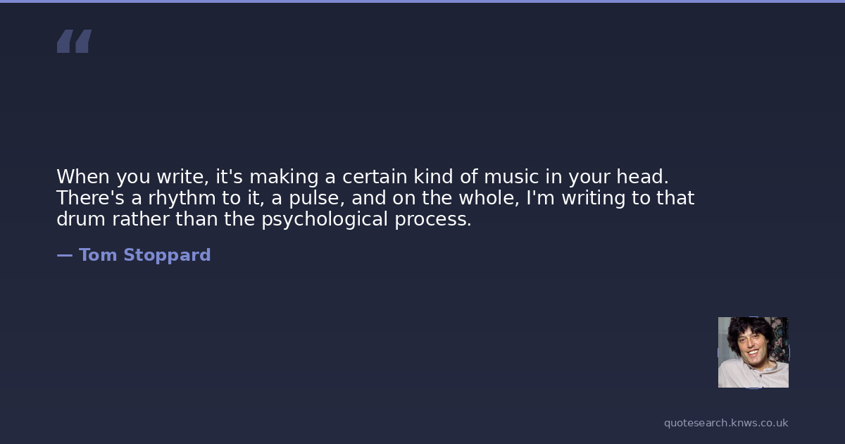 When you write, it's making a certain kind of music in your head. There's a rhythm to it, a pulse, and on the whole, I'm writing to that drum rather than the psychological process.