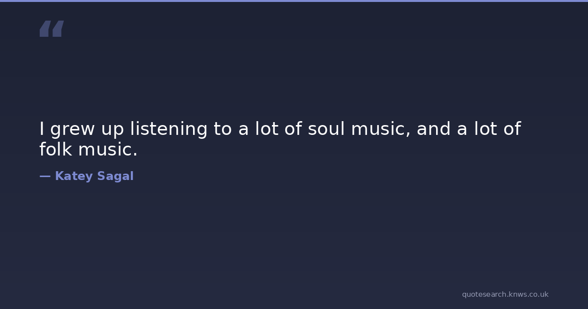 I grew up listening to a lot of soul music, and a lot of folk music. Soul Listening Up Download Image Share on X Share on Facebook Copy Link