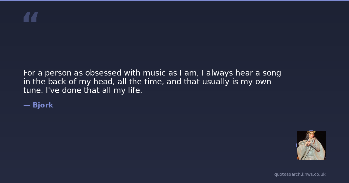 For a person as obsessed with music as I am, I always hear a song in the back of my head, all the time, and that usually is my own tune. I've done that all my life.
