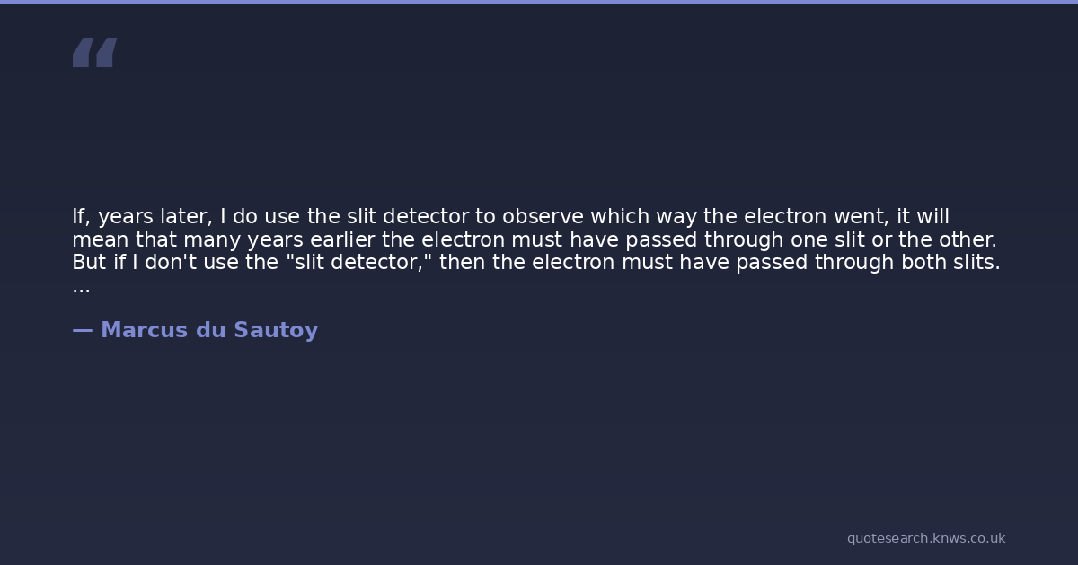 If, years later, I do use the slit detector to observe which way the electron went, it will mean that many years earlier the electron must have passed through one slit or the other. But if I don't use the "slit detector," then the electron must have passed through both slits. This is, of course, extremely weird. My actions at the beginning of the twenty-first century can change what happened thousands of years ago when the electron began its journey. It seems that just as there are multiple futures, there are also multiple pasts, and my acts of observation in the present can decide what happened in the past. As much as it challenges any hope of ever really knowing the future, quantum physics asks whether I can ever really know the past. It seems that the past is also in a superposition of possibilities that crystallize only once they are observed.