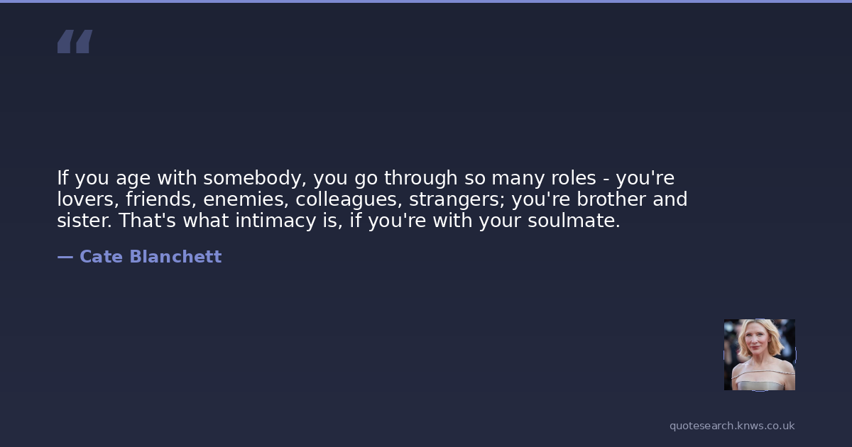 If you age with somebody, you go through so many roles - you're lovers, friends, enemies, colleagues, strangers; you're brother and sister. That's what intimacy is, if you're with your soulmate.